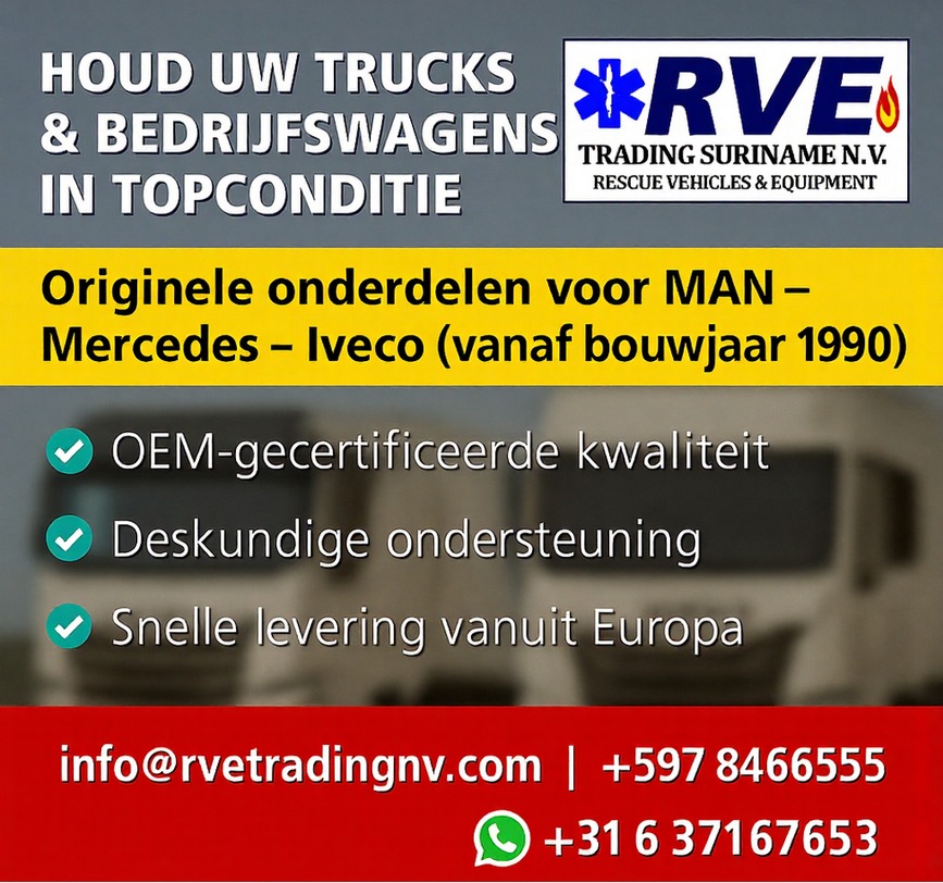 RVE Trading Suriname NV is gespecialiseerd in advies, bemiddeling en ondersteuning bij de aanschaf van voertuigen, equipment en PSU voor hulpdiensten in Suriname. Wij richten ons op brandweer- en ambulancediensten en bedrijven in de olie en gasindustrie en benzinemaatschappijen